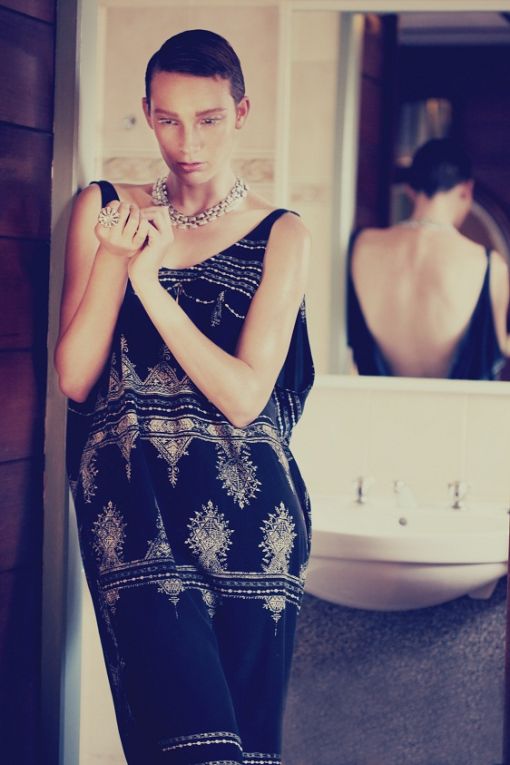 Headpiece and belt, stylist’s own. Vintage dress and fur jacket, both from St Vinnies. Shoes by Topshop. Jewellery by Shag.