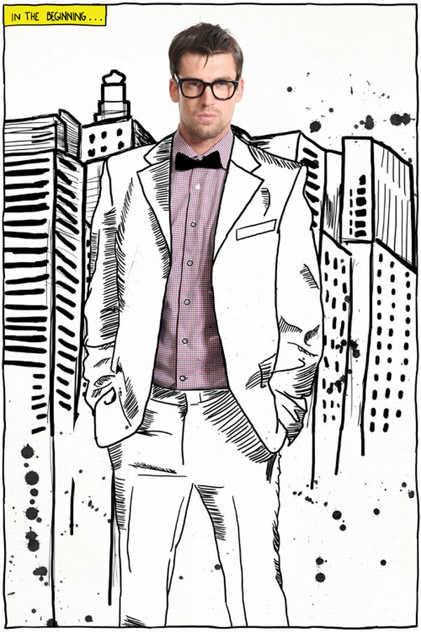 Fashion caption (above): Checked shirt by Peter Werth. Bow tie from Rico Jordan. Specs from Glebe Markets.
