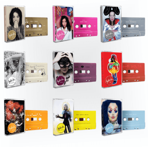 Now Björk is jumping on the retro bandwagon, releasing all nine of her studio albums in spiffy colours on humble cassette. These are, in order of original release: Debut, Post, Homogenic, Vespertine, Medulla, Volta, Biophilia, Vulnicura, and Utopia.