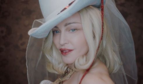 In the teaser, Madonna appears in various guises (ghosts?) of her past, featuring hints of the graffiti artist from Borderline; the corporate feminist from Express Yourself; the dominatrix (ie: Dita) from Erotica; the bad girl from, well, Bad Girl; there’s even a look that melds her Like A Virgin bridal get-up with her Music cowboy motif.
