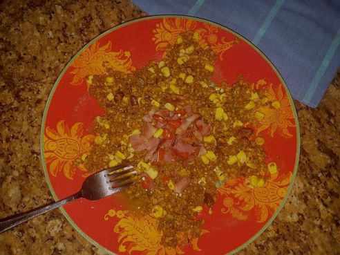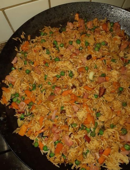 Today we spotted a a packet of Tilda Coconut Basmati rice in the pantry – but were in the mood to make a special fried rice. Mixing a bunch of fresh veggies, a little soy, some special XO sauce, Chinese char siu pork, and finally the rice, the result was not only quick but super-tasty (see pic above).