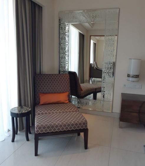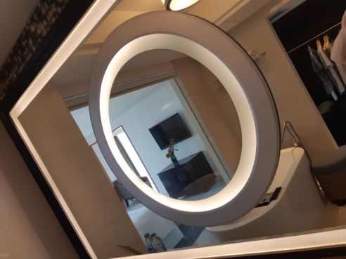 Actually, take a closer look at the circle-shaped centre mirror and you’ll discover built-in lights playing glamorous tricks on your eyes. Mirror, mirror, on the wall, indeed!