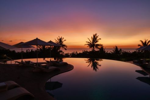 The hotel lies opposite popular Kuta Beach, helping to lend an otherwise tarnished part of Bali (due to surfer and backpacker action) a more polished, classic-meets-contemporary aesthetic.