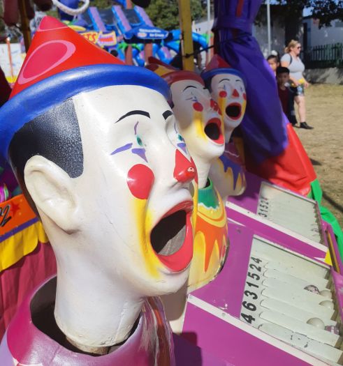 It’s the clowns that get me. Scary to look at, but you just cannot look away. Not that I’m afraid to see clowns that are, say, up on the big screen. I’ve only just watched It: Chapter Two and I’m looking forward to seeing the Joker movie this week. But those munted-looking plaster clowns at the Perth Royal Show really do get to me, their freakish heads swiveling left, right left…