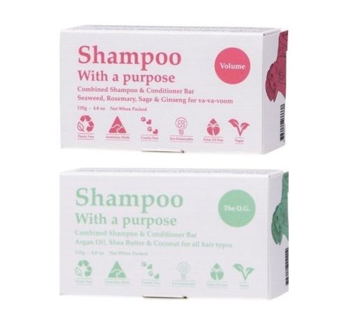 ↑ WHAT: Clover Fields ‘Shampoo With A Purpose’ Bar. DESCRIPTION: This product poses a sensible acronym – considering it makes for a great SWAP to the usual haircare regime. Each Shampoo With A Purpose bar contains natural extracts such as seaweed and collagen for volume (ie: the bar in the pink packaging) or Argan oil and coconut for all hair types (the original bar in light green packaging). The bar not only takes up far less space on the shower caddy, it froths up with just a few strokes through the hair and delivers similar – if not better – results as ordinary shampoo in a bottle. Free from palm oils, sulphate and plastic. Other varieties also available. WHO TO BUY IT FOR: Makes a great addition to any beauty hamper for the Well-Groomed Guy or Girl. RRP: $14.95 per bar. AVAILABLE FROM: Online outlets such as The Well Store and Wholesome Hub, and also at www.shampoowithapurpose.com.
