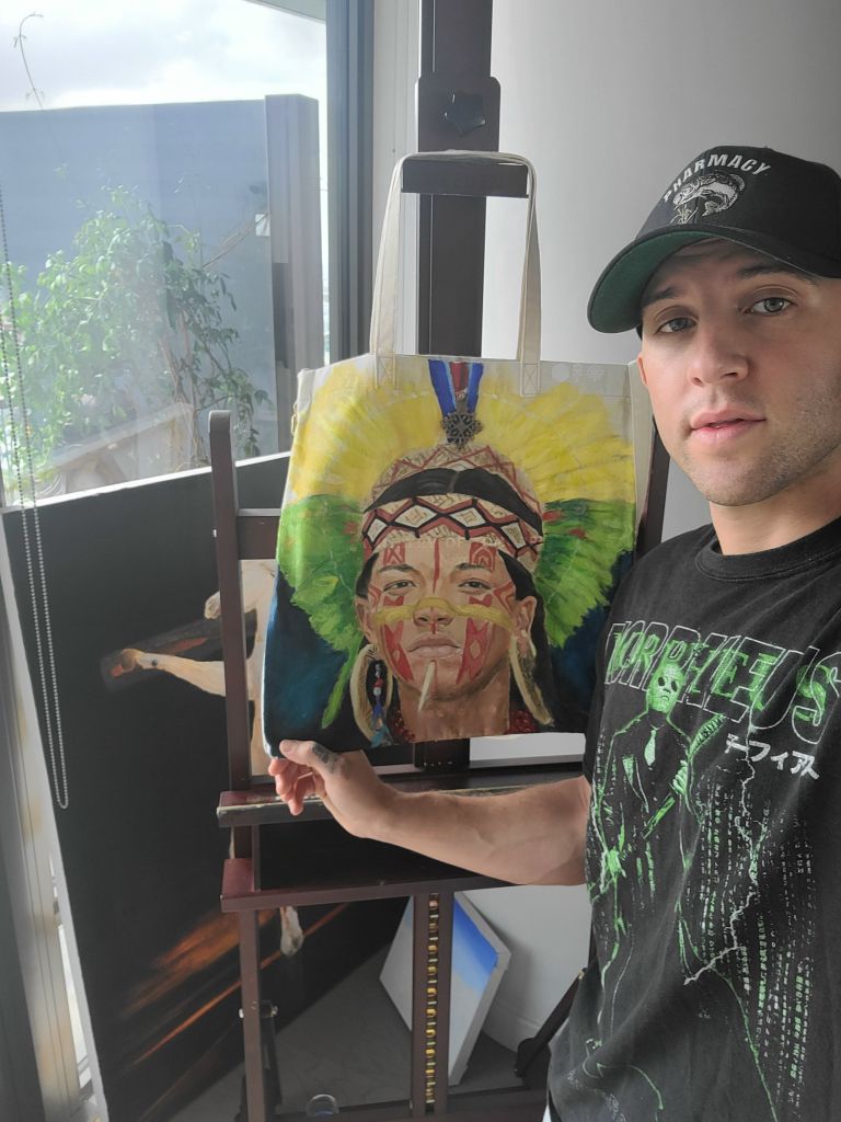 The celebs were asked to draw or paint anything they’d like onto eco-friendly canvas bags which then went on display for public viewing at Christie’s – coinciding nicely with “Luxury Bag Week” at the auction house.