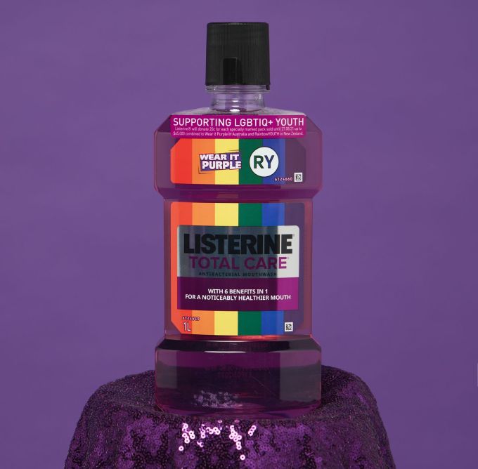 Listerine has partnered with Wear it Purple Day in Australia, and Rainbow Youth in New Zealand, to create a limited edition mouthwash from which they are donating $65,000 towards these charities.