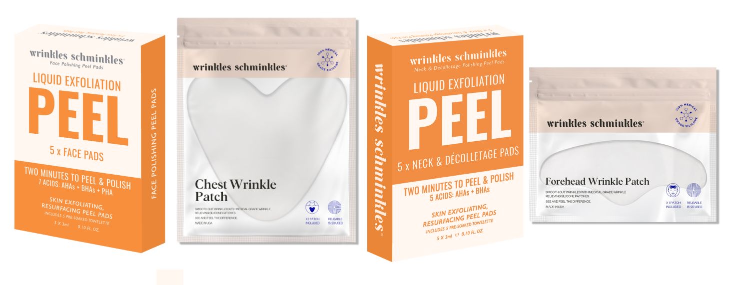 Wrinkles Schminkles also offer Face and Decolletage Peel Pads which work like peels in an actual clinic but can be carried out at home in minutes.