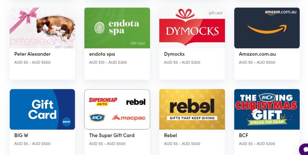 Retail brands with cards ready to be swapped for include David Jones, Myer, The Iconic, Coles, Dymocks, Amazon, Netflix, Rebel Sports, Hoyts, Bunnings, K-Mart, eBay and a whole lot more.