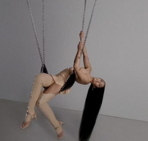 The campaign, snapped by Spanish photographer Carlota Guerrero, sees Lourdes posing virtually naked if it weren’t for a couple of accessories from Lee’s ‘Cage Chain’ collection.