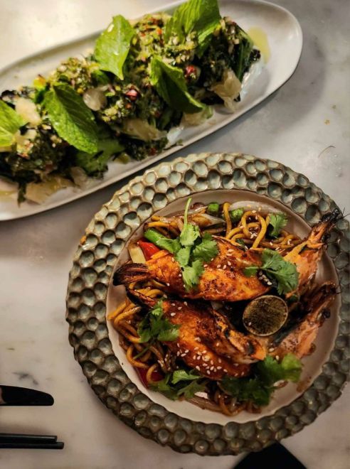 My partner is not a big seafood eater so I tried the chilli butter king prawn ($25) myself. Decadent, and served with a sambal sauce, kale and green shallots, sitting on a bed of Hokkien noodles, this delicious sampling rounded off a relatively big but very satisfying meal. I’ll walk that extra kilo off tomorrow.