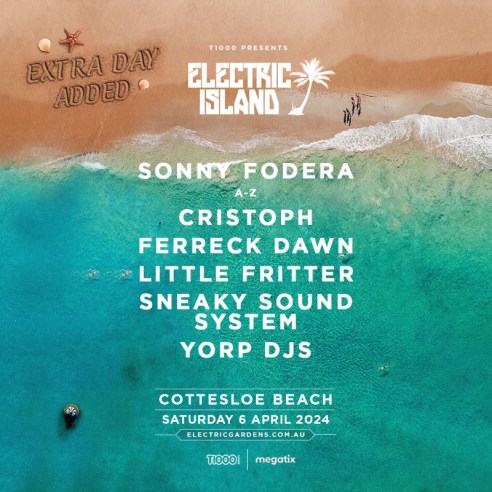 Due to overwhelming demand for the ‘Electric Island’ Sunday show on Cottesloe Beach, organisers are excited to announce there will be a second show on the day preceding – Saturday 6th April.
