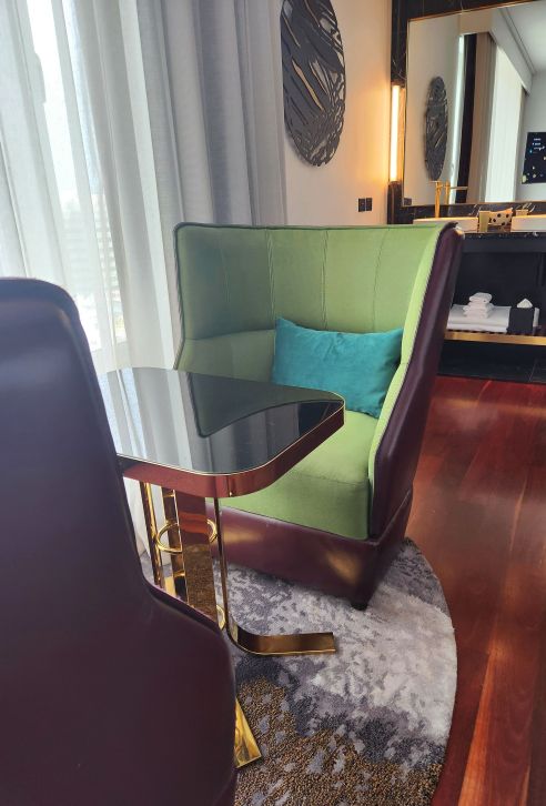 We enjoyed staying in a Luxe King room, which boasted generous space around the king bed, enough to fit two handsomely upholstered wingback chairs, a small reading table, mini fridge, bar and snack station, side table at each side of the bed, and even a vinyl record player that urged me to nick back home and retrieve a couple of classic LPs to play on my mini holiday.