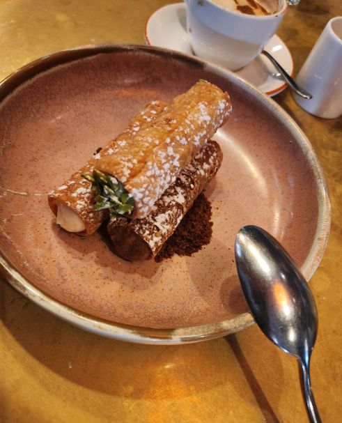 Ordinarily we wouldn’t do dessert in the middle of the day but one look at the triple cannoli on the menu – flavoured with lemon, orange and original ricotta – and we were sold.