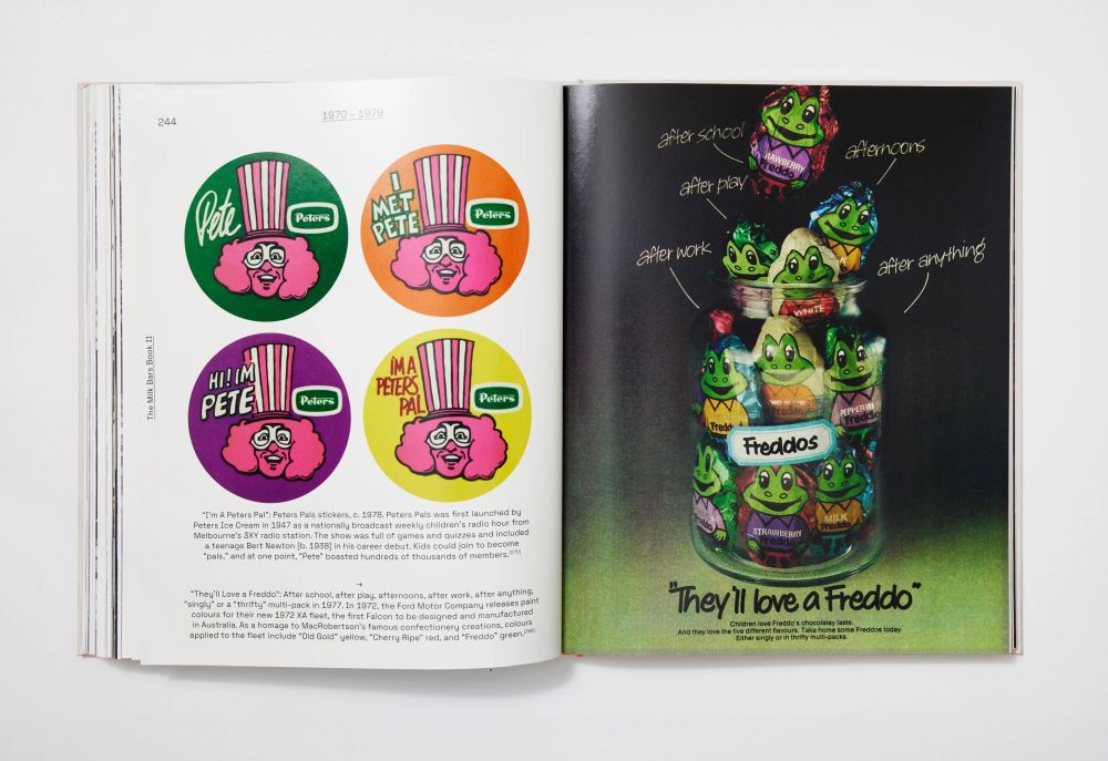 Delving further into this colourful history is The Milk Bars Book. Volume II: A Sweet History with each decade meticulously documented, inviting readers into a visual feast of ads, clever brands, and sweet treats that shaped Australian childhoods.