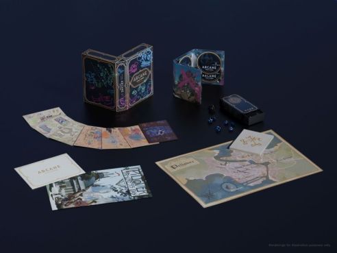 This limited-run set comes packed with extras inspired by the world of Arcane that you won’t find anywhere else, fit for the ultimate fanatic. As well as original artwork, there are 7 “Hex Crystal” Liquid Core Resin Dice and a Velvet Dice Pouch, plus Double Sided Progress Day Poster with Original Jinx Graffiti, 6 Art Cards Featuring Powder’s Drawings and fabric of Caitlyn’s Piltover Map.