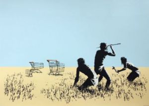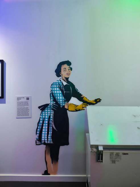 But there are some originals among the 200-plus pieces we’ve been treated to at the current exhibit on in Northbridge, Perth. The pieces were likely held onto by Banksys former official art dealer, Steve Lazarides, the man behind this exhibit, who is now publicly profiting from selling the artist’s legacy (despite Banksy’s supposed rejection of commercialism). Many see his role as a betrayal of the very values Banksy built his reputation on. Only time will tell what the consequences to Lazarides will be. For now, though, he’s done a pretty good job getting all the good images in the one place, but… it seems the exhibition’s curators have had their work cut out for them – that is, if the non-purpose tilt on some of the hung works and the quickly-tacked-on plaques beside each is any indication of excess busy-ness.