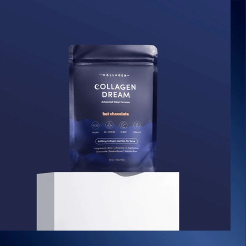The Collagen Co’s Collagen Dream is naturally sweetened, contains chamomile to reduce anxiety and improve sleep quality, magnesium to regulate melatonin production and promote relaxation, and zinc to regulate sleep patterns.