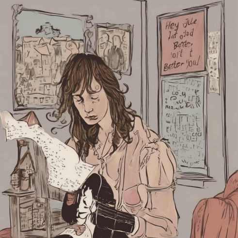 Note: When you feed lyrics into AI software, it comes up with a first impression that is usually on the mark. If you’re not happy with that output, it offers a second option, and so on. Spookily enough, this was the second impression of Taylor Swift’s ‘Dear John’ – and doesn’t it look the perfect artwork for one of her record sleeves?