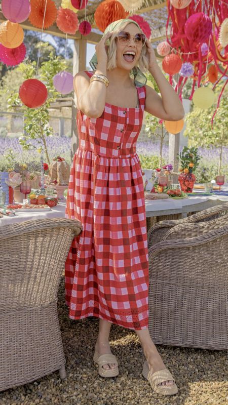 Bright summer style made easy with the Edin Dress in Poppy Check.