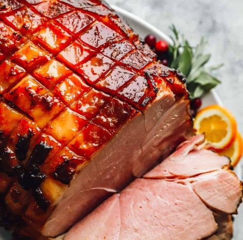 01. A glazed ham: Often coated with honey, sugar, mustard or cloves, a bone-in ham is a festive favourite. It can be served hot or — as is common in the summer heat — cold or at room-temperature.