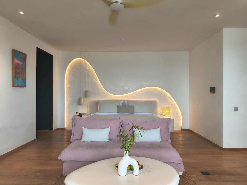 In comparison to other Bali hubs, Angus says, “Where Uluwatu is ‘eat, surf, nature, repeat’, and Changgu is for the more conscious entrepreneur or ‘digital nomads’, Nuanu is a kind of happy medium of these places. In the morning you want to wake up and do yoga and in the evening you want to order a bottle of wine and enjoy the sunset.” Angus also highlights the fact that there is popular beach club, Luna, right next door, should guests wish to do some more serious partying – an active venue that you wouldn’t realise was so pumping since the soundproofing at Oshom is so solid. Oshom’s ethos is so playful, heck, there’s a disco mirrorball in your walk-in wardrobe!
