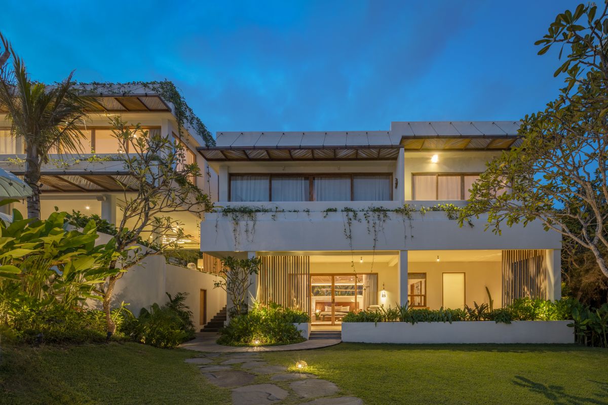 Oshom Bali: exterior at dusk.