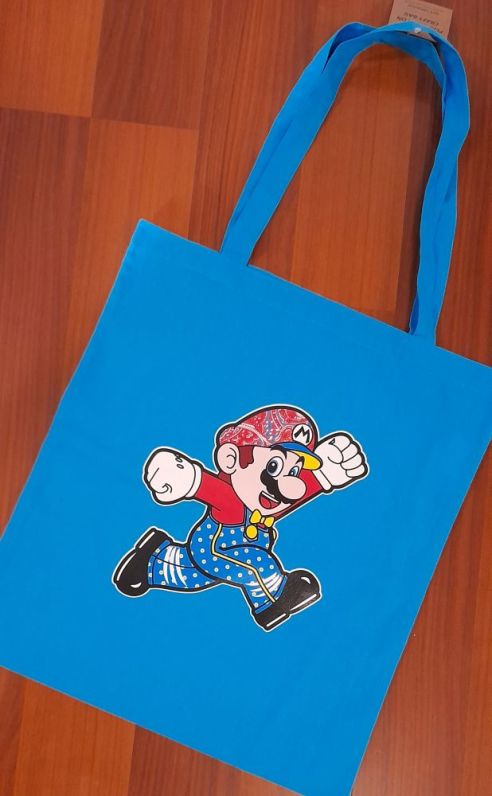 And the machine cuts shapes beautifully, too, of course, like this Mario transfer we whipped up just by sending a vector file through the Cricut and seeing it cut with perfect laser precision. Another fun look on a tote.
