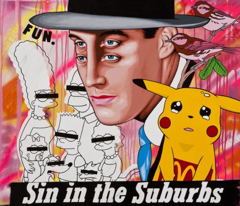 Critiquing our media-obsessed society and our loss of innocence through advertising, Frost’s works subvert logos, icons, and characters from popular culture and re-presents them in startling and often confronting new ways. Often a work feels like a million dollars of some multinational company have gone down the drown with one simple juxtaposition, and yet big brand names are clamoring to work with the artist.