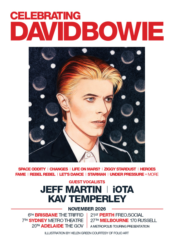Celebrating David Bowie is a salute to everyone’s favourite Starman and will feature an all-star lineup of vocalists: Jeff Martin (the frontman of The Tea Party), Kav Temperley (he of Eskimo Joe fame), and NZ singer/songwriter iOTA – all backed by a full live band.