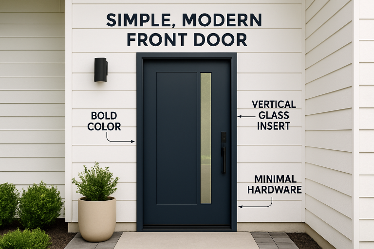 - Bold Colors: Homeowners are shifting toward expressive colors like navy blue, emerald green, charcoal, and matte black. These shades stand out as a statement piece and contrast beautifully with neutral facades.