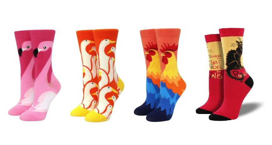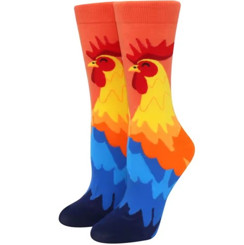Brighten up this season’s wardrobe with these beaut print socks. Available in Pink Flamingo, White Goose, or Golden Rooster, these one-size-fits-most socks are made of a comfortable blend of cotton and elastin.